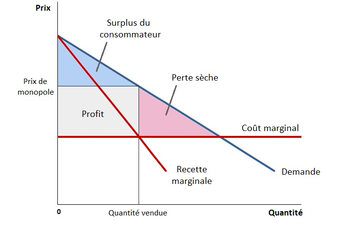 • Perte de surplus du consommateur : prix plus élevés et quantités plus faibles qu’en concurrence parfaite.