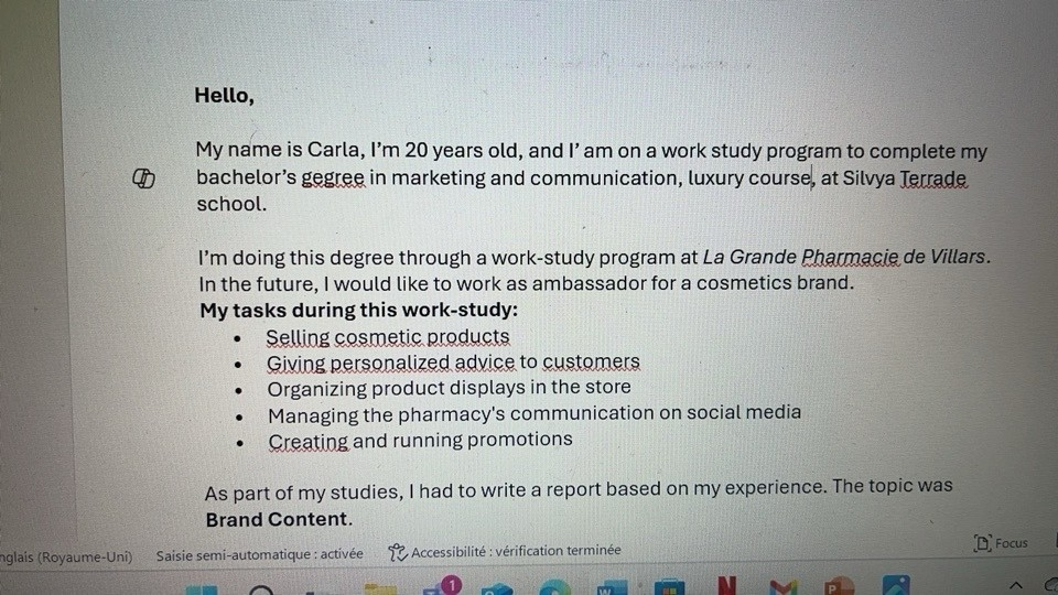 Cette épreuve va vous demander de vous exprimer en anglais. Ainsi, voici une liste de termes où les étudiants ont l’habitude de mal prononcer : specialized, several, related, studies, deepen, knowledge, concrete, further, essential, currently, entirely, support, female, such, handled, professional, diverse, require, passionnate, finished, completed, DUT, worked, alone, ST2S, psychology, care, accompaigned, assignement, specializing, developed, confirm, study, ideally, LinkedIn, Indeed, hello, studies, high, degree, organized, knowledge, ideal, CAP, work-study program, obtained, role, task, responsible, additional, providers, initiative, hunger, anger, profit (prononce le « t » en anglais)